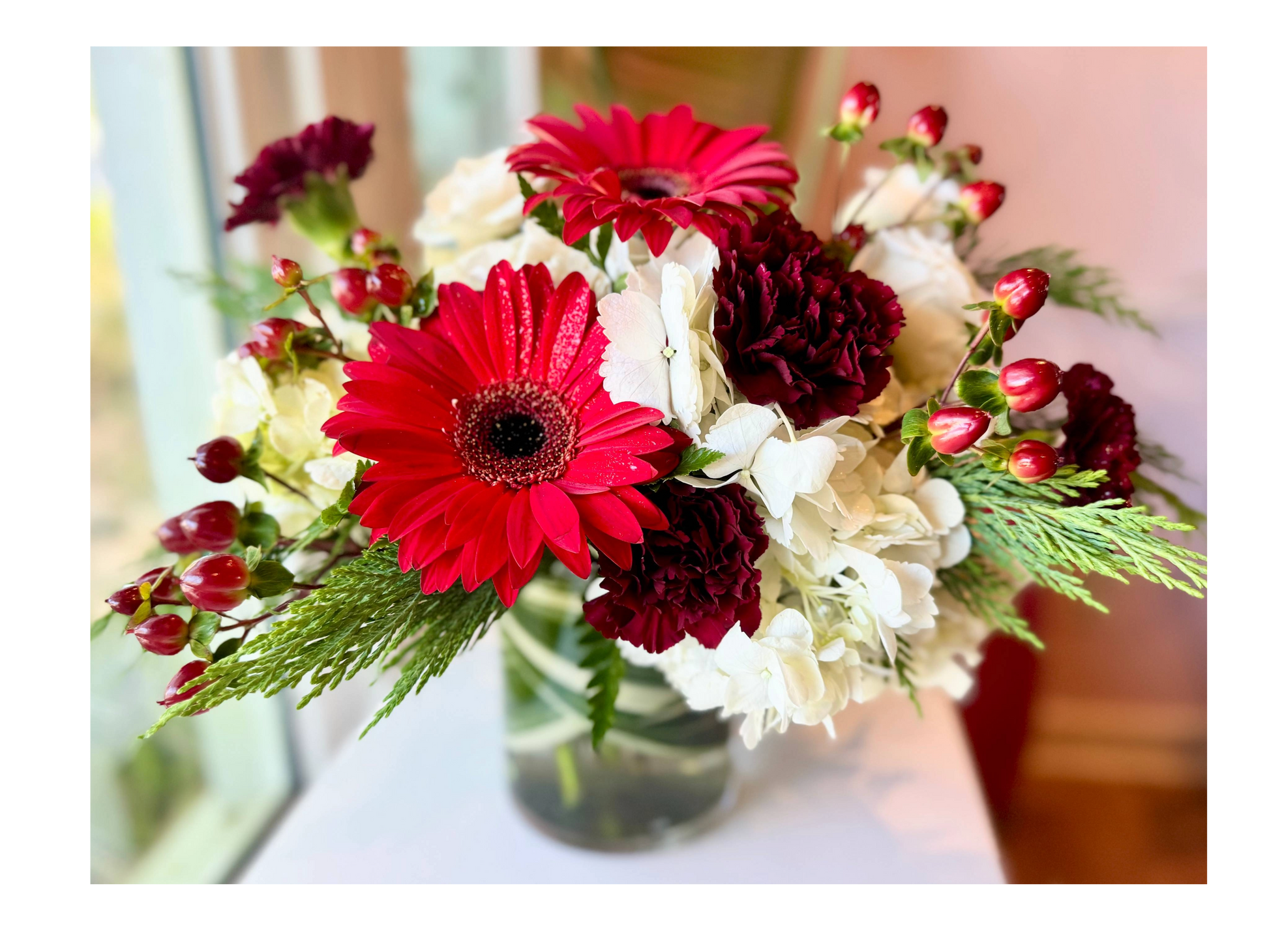 This classic Christmas arrangement features rich red blooms accented with festive greenery for a warm, traditional holiday look. Designed to bring seasonal charm and elegance to any space, it’s perfect for celebrating the spirit of Christmas and sharing holiday cheer.